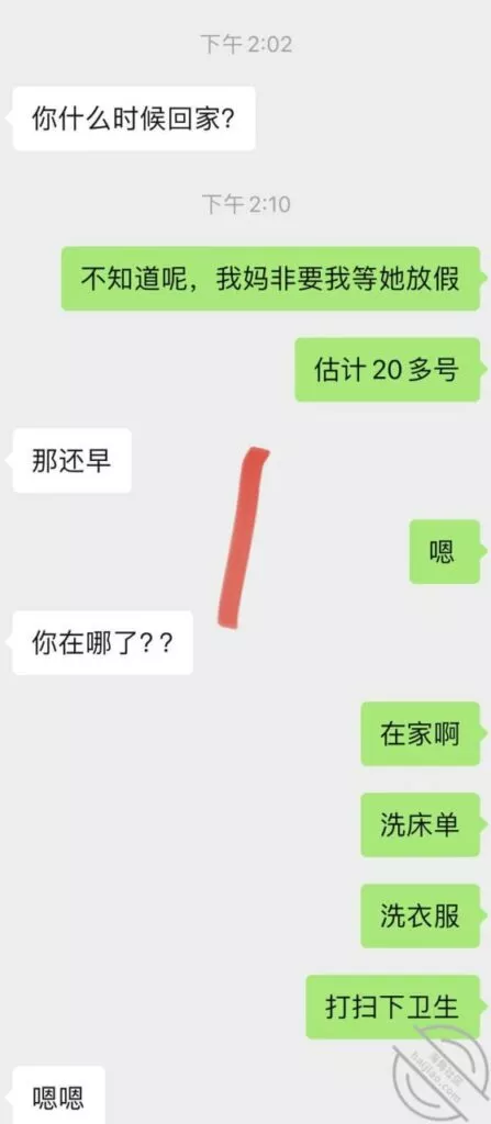 我也挺可怜,之前心心念念的等她老公来,然后体内释放她,让她B里夹满我的体液回去,让她老公舔,然后带着我的体液再被她老公Cao,可惜实现不了了,怎么就非要在姨妈来的时候回来,我俩今天聊天记录,这两天晚上我都没留她在我这睡,因为来姨妈了么,留下也干不了啥,我也觉得无聊,所以这两天每天晚上自己喝喝酒打打游戏,她就是来呆一会然后回自己家睡觉;这小娘们现在已经离不开我了,不跟我一起居然都睡不好了哈哈,不知道今天晚上跟他老公睡觉,会不会习惯性的喊个爸爸,或者给她老公玩个足交啥的,那样估计她老公马上就能想到她外面有人了吧,因为毕竟以前从来没玩过,哎,我的计划也泡汤了,心里太不爽了,还是要等下次了,不知道下次什么时候她老公才能再回来;已经第三天了吧,再有几天就可以Cao她了,很多兄弟们心心念念的小玩具,下次视频帖就可以安排上了