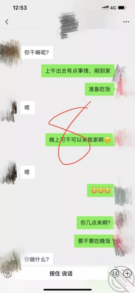 兄弟们好消息啊!上次不是准备强推未果吗,当时走了以后,我以为会不理我了,没想到我尝试着发个消息给他。居然回我了,也没有半点不高兴的样子,聊天记录自己看哈!之前不是有讲过,我喜欢自己烧饭吃,上次跟他吃饭的时候也铺垫过会邀请他来,今天以为他会生气,抱着试试的的状态,结果邀约成功。我连认证的纸条都已经准备好啦,哈哈哈,胜败在此一举了,务必拿下此妞,我的性福生活要来了哦,好期待她跪着给我口的样子,还有在Cao她的时候叫她给老公打着电话,太邪恶了,不说了,我要去准备晚饭啦,最后再附上两张他发来的照片吧!