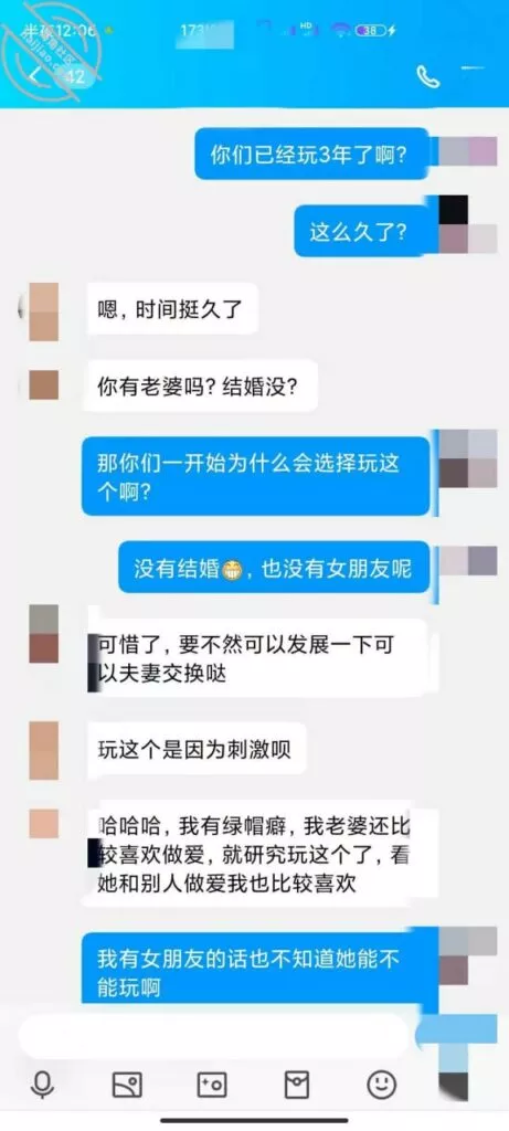 上次发帖,根据兄弟的提示成功加上好友,但是没经验不知道怎么说,有个兄弟私聊说自己做过单男,教了我开场白,说我是本地的一个单男,介绍自己的身高体重发照片,表示一些尊重,但是我发的照片是我朋友的照片,他们没见过 哈哈哈。看说话的语气估计是妹夫,妹夫说他们入圈三年了,应该是19年就已经在玩这个了,那时候小外甥才出生,应该是生完小外甥之后玩的,之后妹妹也打过两次胎,不会是被别人弄大了肚子吧。妹夫承认了他有绿帽癖好,妹妹也喜欢被人Cao,看来妹妹这些年真的没少经历,前几天回家呆了两天,换下来一条内裤 ,