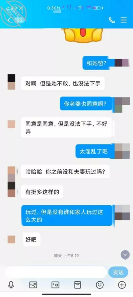有没有想过错乱关系,妹夫说:身边的同事,发小都Cao过妹妹。看来妹妹是可以接受身边人来Cao她的。更震惊的是,妹夫居然想让我爸Cao她的亲闺女!难怪妹妹回家都穿那么搔的内裤,应该是想吸引老爸!但是妹妹抗拒没想尝试,哈哈哈哈,也不知道我爸有没有机会尝尝自己亲闺女的搔B。给大家附上聊天记录,同时帮小弟想想出出主意,我决定等他们回来娘家的时候和妹夫当面坦白,给妹夫看我俩的聊天记录,告诉他是我在和他们聊,不知道是否可行,大神们给点建议啊,还是说我继续这么聊下去,等到见面的时候给他们个惊喜?兄弟们,如果可以成功,我会一直给大家更新我们的情况和视频的!如果我能带着妹妹3p也不会忘记大家的哈!大家多多帮忙出出意见!跪求!