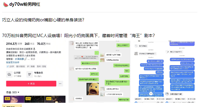 抖音70万粉丝mc男网红seven老男孩,巧立人设包装自己清纯小扔狗,实则是罗志祥亲传弟子,时间管理大师,18页ppt曝光阳光大男孩的真实面貌。