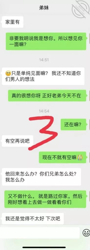 但弟妹毕竟是弟妹,我本来也没有什么想法,直到昨天我弟发来的微信让我升起了一股没法浇灭的邪火。
